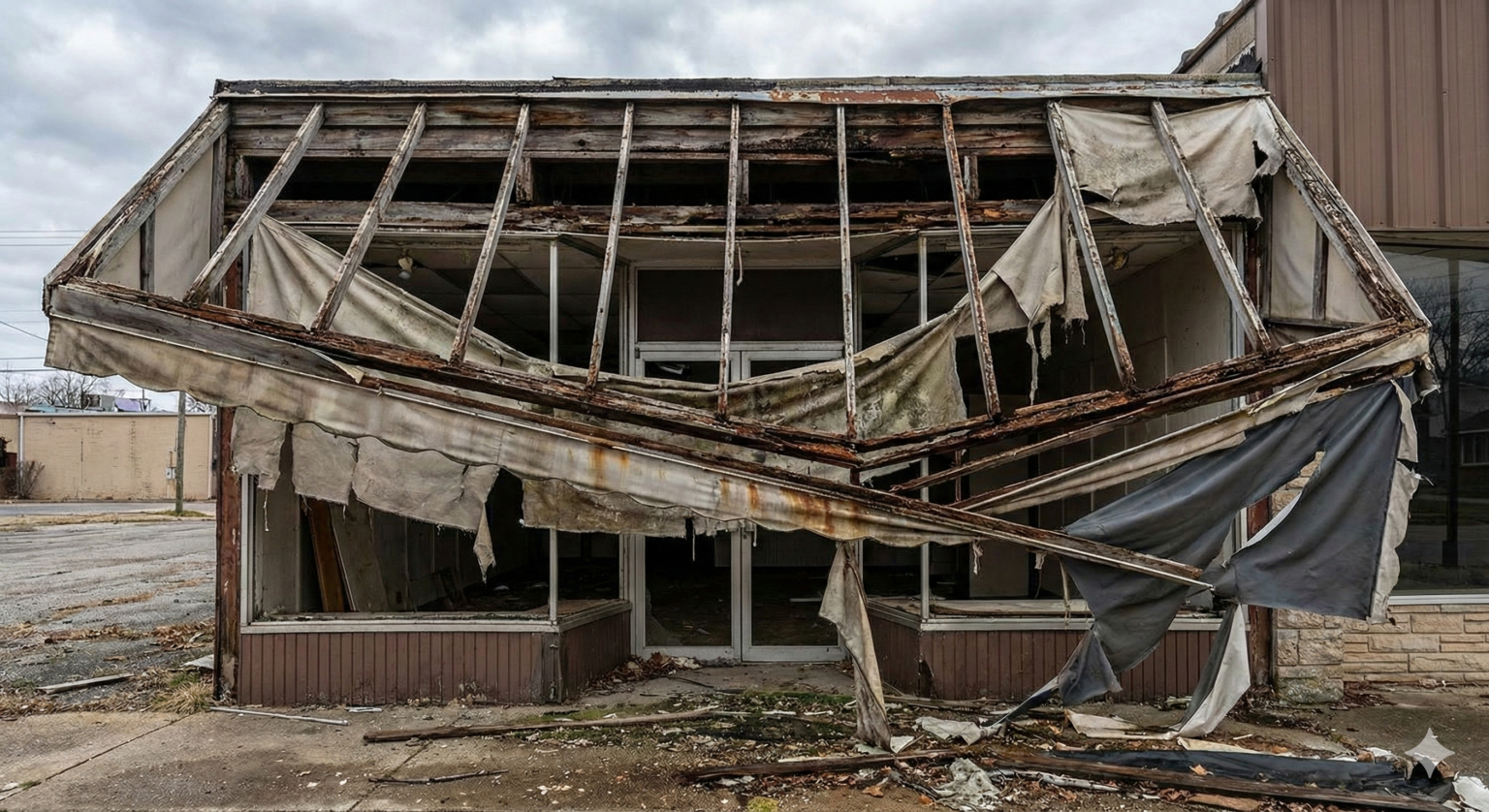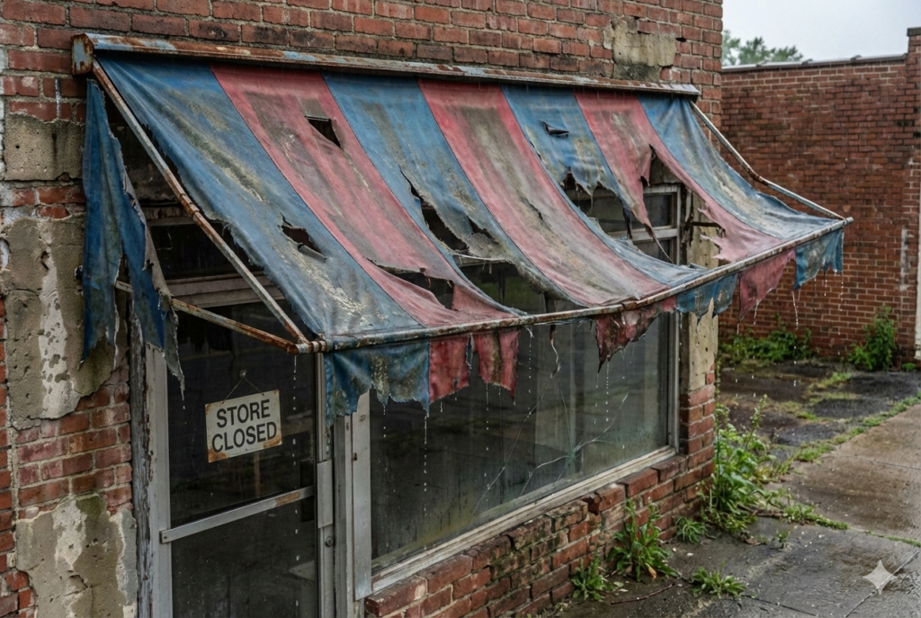 色あせ、破れ、雨漏り。放置されたシートは、無言で”格”を落としています。