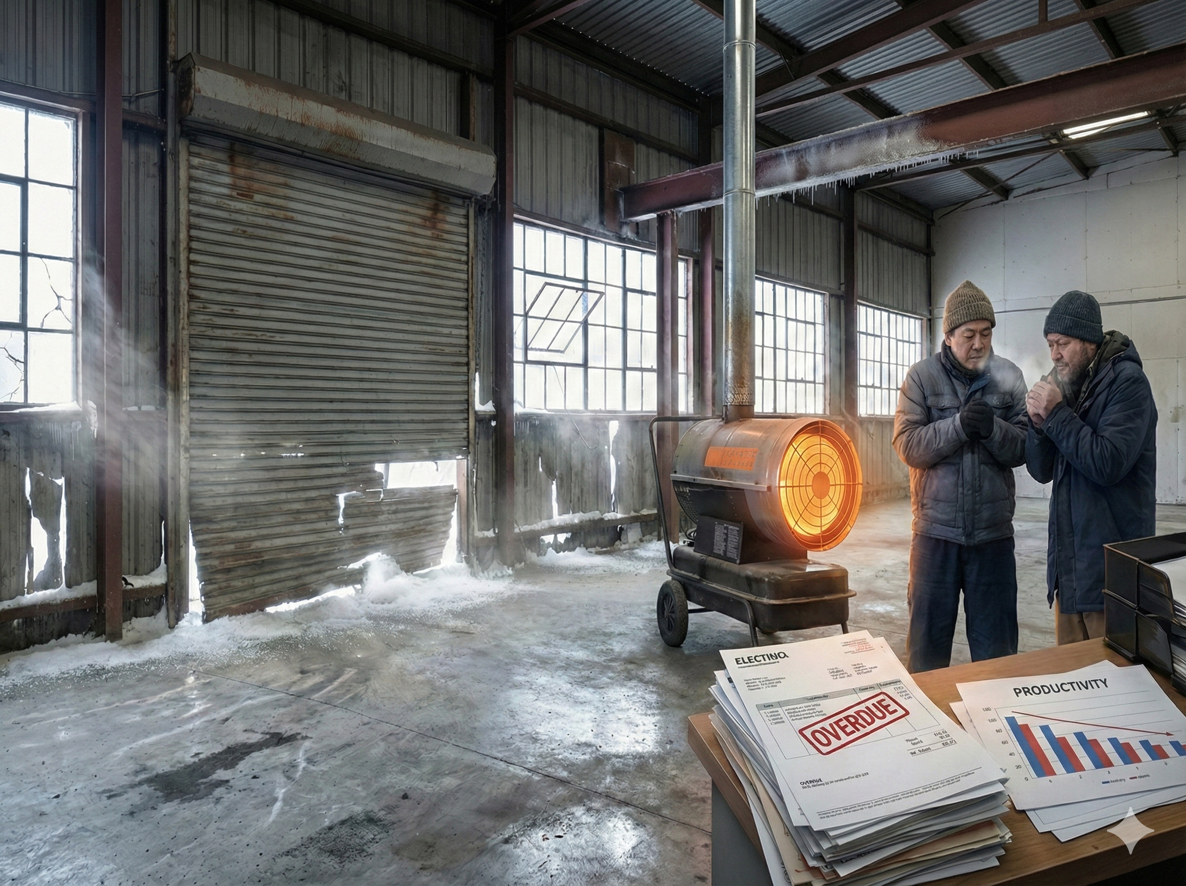工場や倉庫の冷暖房。隙間だらけの空間が、毎月の利益を削っていませんか? それに加え働く人のストレスは、生産性の低下に直結しています。